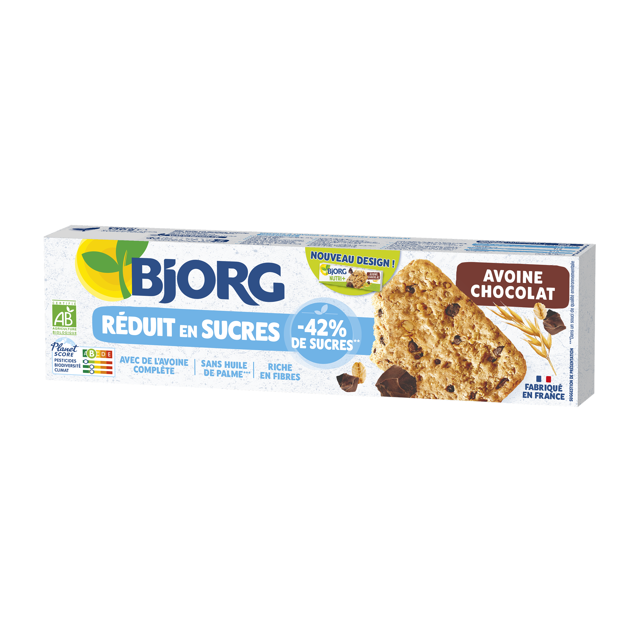 Le biscuit Bjorg Avoine Chocolat est un encas bio idéal pour combler une petite faim! Aux flocons d’avoine complets, il est riche en fibres et réduit en sucres et en acides gras saturés. Facile à emporter partout grâce à leurs sachets fraicheur, il deviendra votre meilleur allié pour une pause savoureuse ! Fondez pour ses pépites de chocolat et son croustillant !