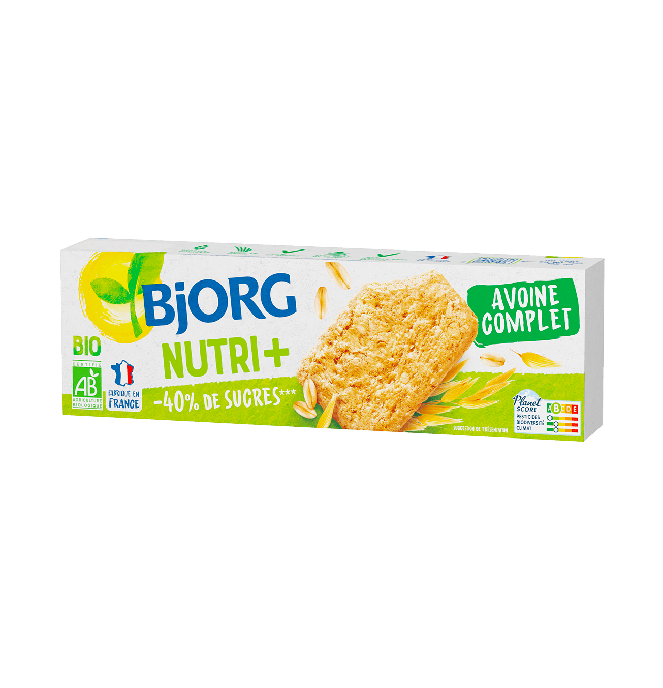 Envie d’une pause Bio et nutritionnelle? Craquez pour nos biscuits Avoine Complet! Riches en fibres grâce aux flocons d’avoine, ils ont été pensés pour vous apporter des éléments essentiels à une journée équilibrée. Faciles à emporter partout grâce à leur sachet fraicheur, ils deviendront votre meilleur allié pour une pause savoureuse au quotidien !