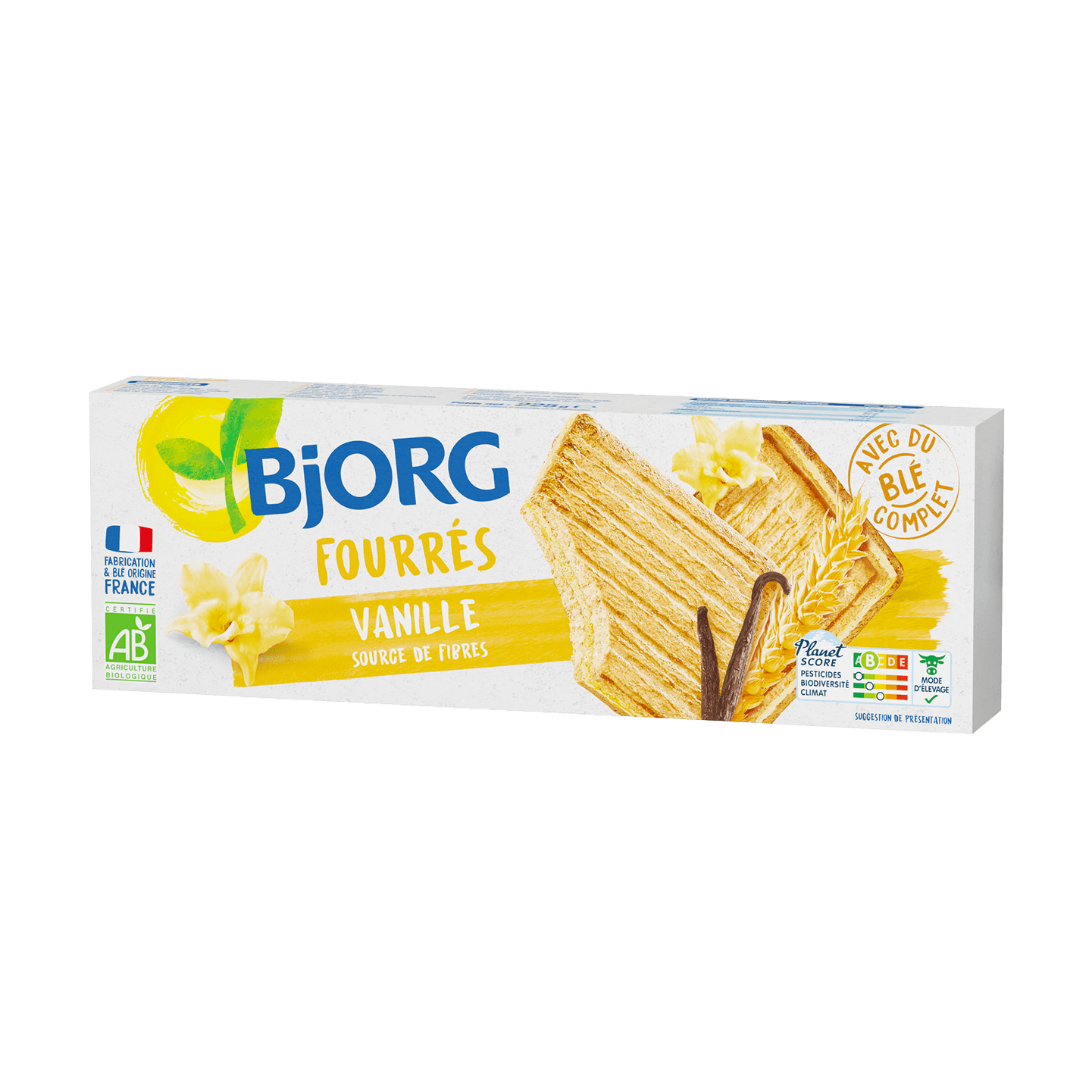 Nos fourrés à la vanille allient un délicieux fourrage à la vanille à de savoureux biscuits avec du blé complet. Nos fourrés sont ainsi naturellement sources de fibres. Laissez-vous tenter par ce goûter croustillant qui vous fera succomber et retomber en enfance.