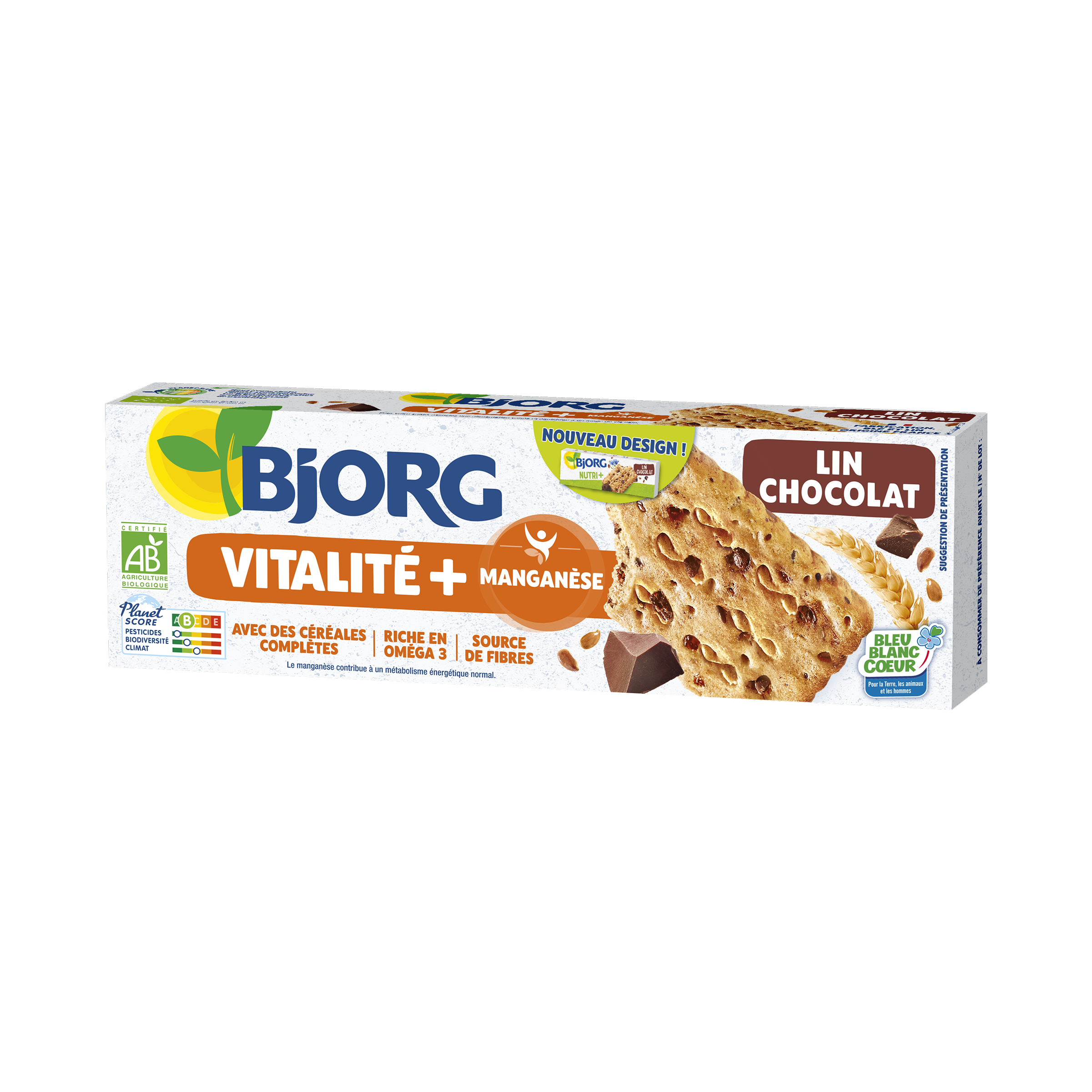 Laissez-vous tenter par ce délicieux biscuit céréalier aux graines de lin et pépites de chocolat noir. Les biscuits Lin Chocolat Bjorg sont naturellement sources de fibres et d’Oméga 3. Et pour vous garantir des bienfaits nutritionnels, ils vous apporteront phosphore et fer pour la vitalité. Emportez-les partout grâce à leurs sachets fraicheur individuels !