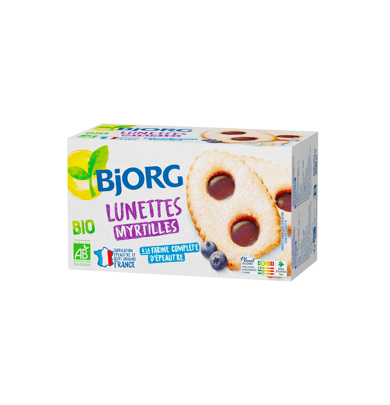Nos lunettes à la myrtille sont issues de l’agriculture biologique. Sous le craquant d’une savoureuse pâte sablée à la farine complète d’épeautre saupoudrée de sucre glace, se trouve une délicieuse purée de myrtille qui vous fera fondre de plaisir. Ces biscuits sont sans huile de palme pour vous permettre de concilier plaisir et gourmandise.