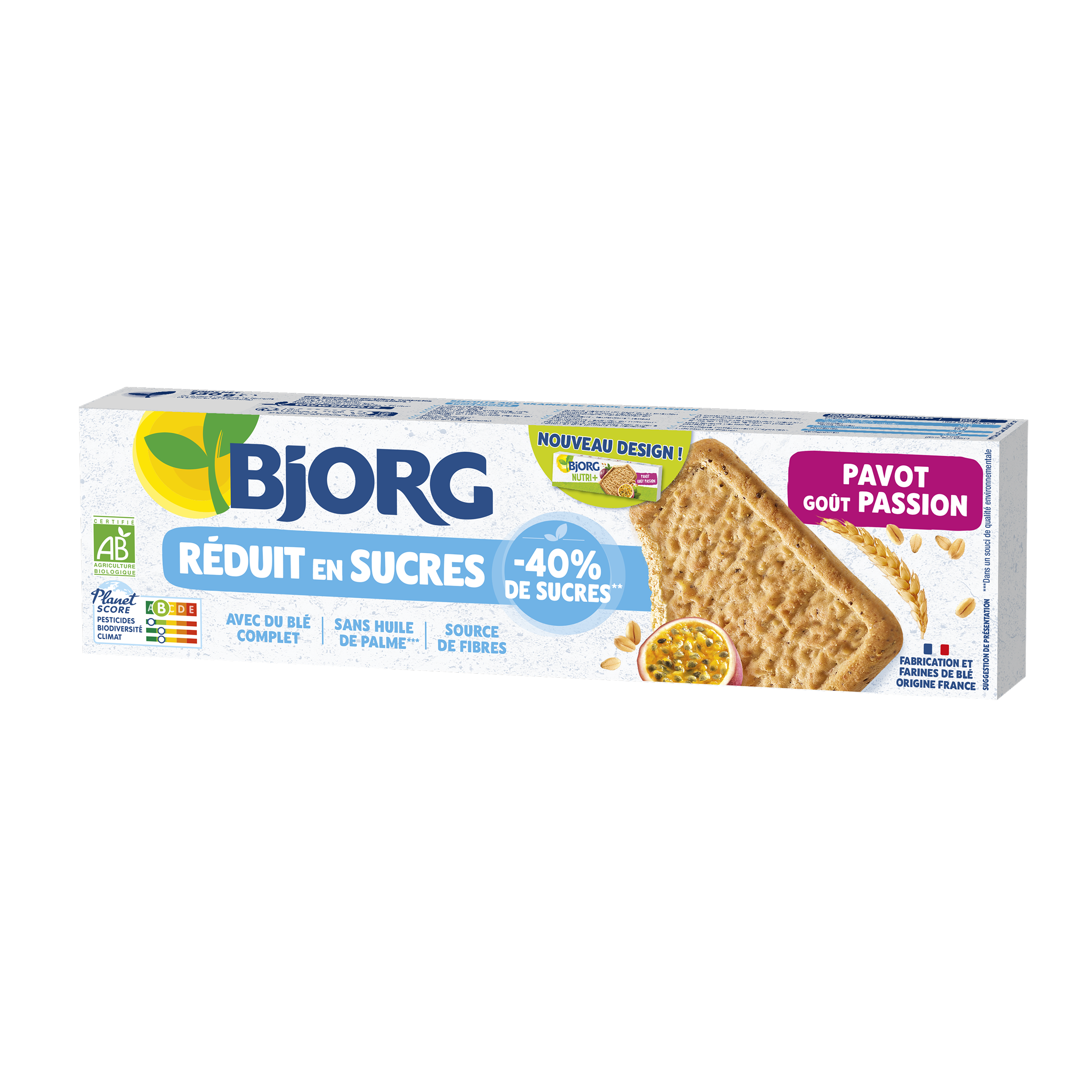 Fabriqué en France et au blé complet, ce biscuit gourmand est aussi nutritionnel : -41% de sucres, source de fibres et de vitamine E, sans huile de palme.