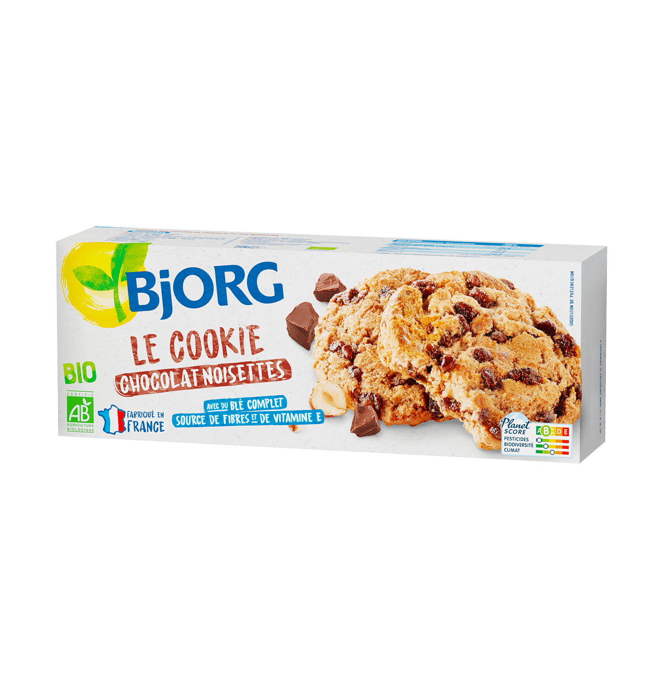 Sources de fibres et de vitamines, nos Cookies Chocolat Noisette biologiques sont élaborés avec du véritable chocolat noir et des éclats de noisettes. Savourez ces biscuits croustillants et appréciez leur goût authentique.