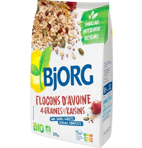 Céréales Flocons d'avoine 4 graines et raisins 375g