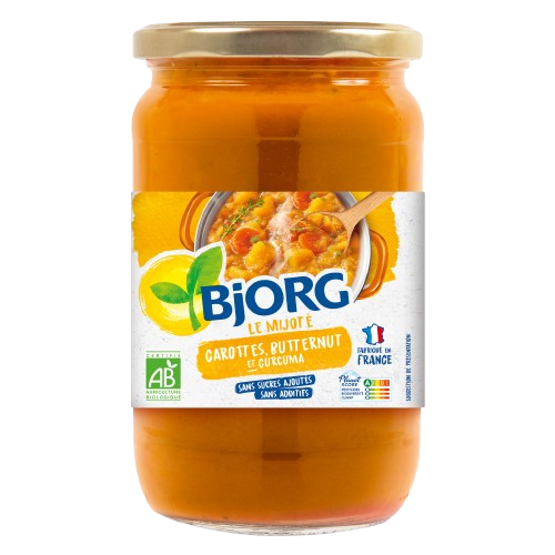 Prêt à l’emploi et en format familial, le mijoté carottes, butternut et curcuma, est un concentré de saveurs et de générosité. Idéal en accompagnement des céréales, pâtes ou riz. Une recette saine, gourmande et riche en légumes qui ravira les papilles de toute la famille. En plus de vous régaler, gagnez du temps précieux au quotidien. À table!