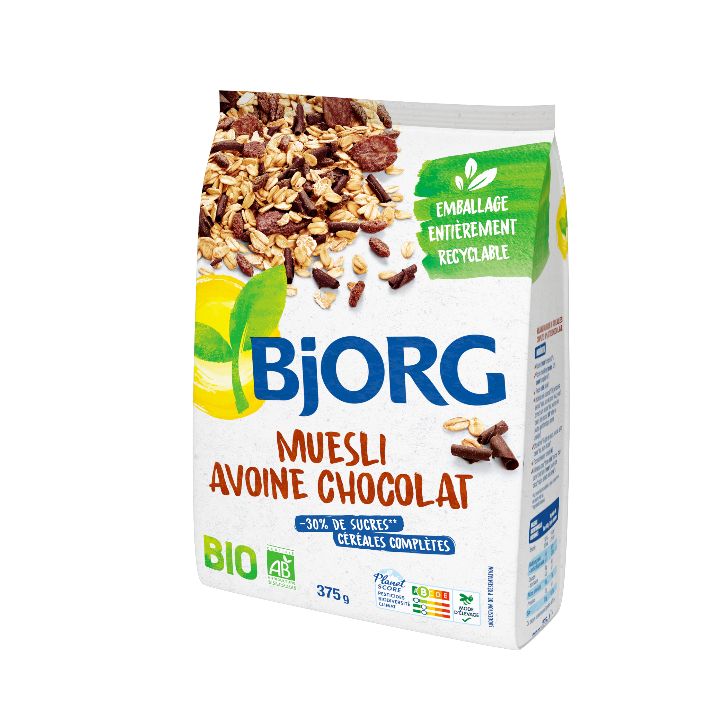 Découvrez le Muesli Avoine chocolat Bjorg : des céréales complètes offrant naturellement à votre corps des fibres pour bien démarrer la journée. Des pétales croustillants et du véritable chocolat pour fondre de plaisir.