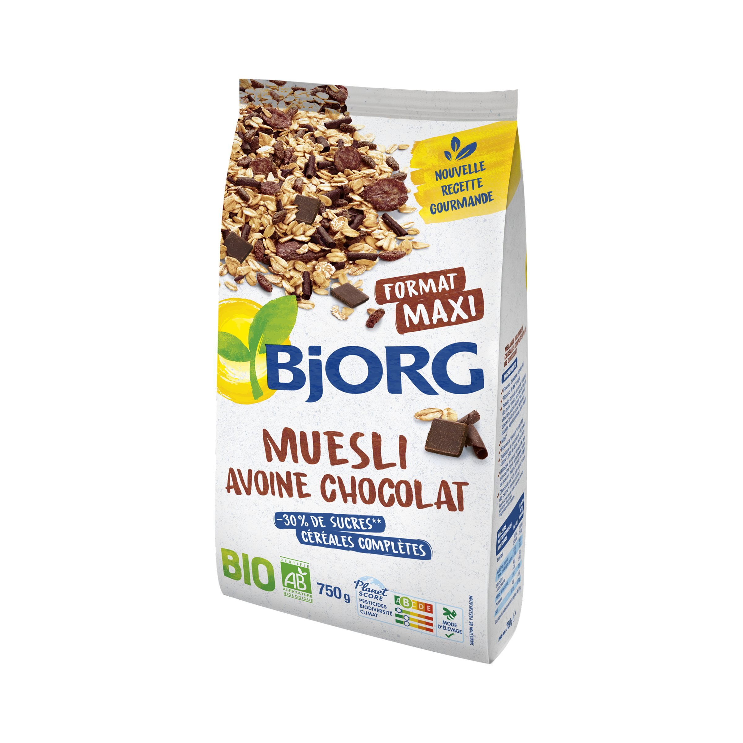Aux céréales complètes : avoine et épeautre et avec -30% de sucres.