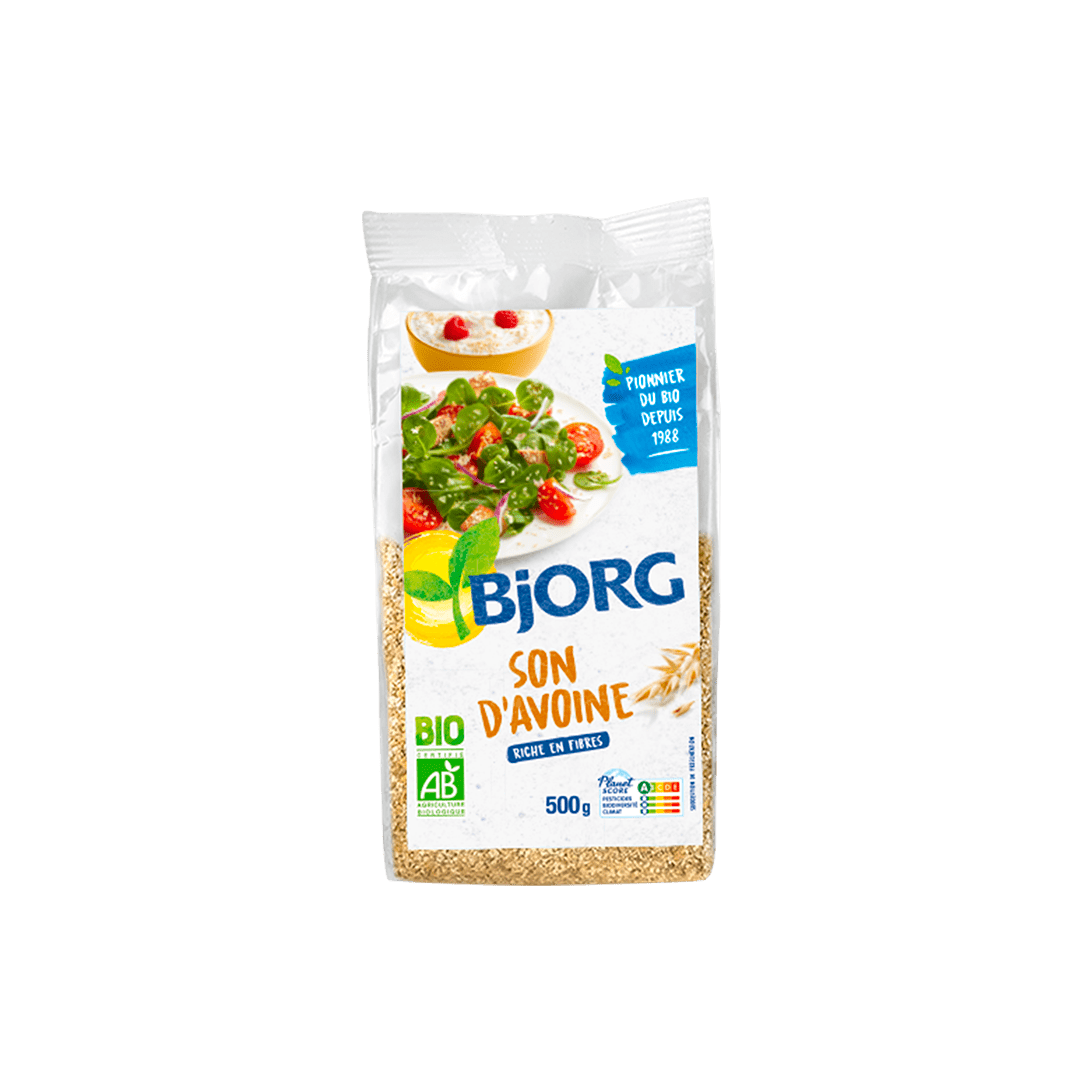 Bjorg a sélectionné pour vous la partie la plus concentrée en fibres du grain d’avoine, pour vous proposer un son d’avoine bio, naturellement riche en fibres et source de protéines.