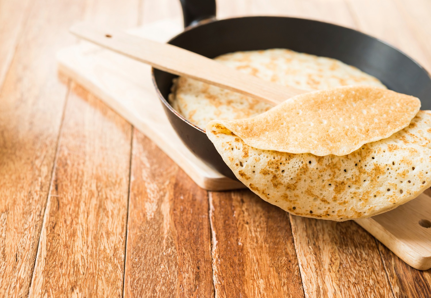 Faites cuire les crêpes dans une poêle bien chaude environ 30s de chaque côté.
