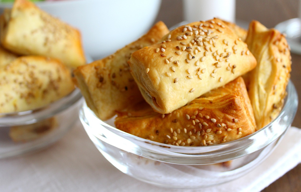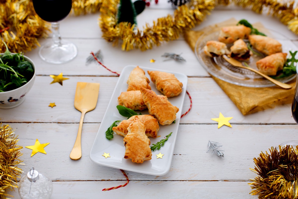 Enfournez pour 10 min, puis baissez la température à 180°C et poursuivez la cuisson encore 10-15 min jusqu’à ce que les feuilletés soient bien dorés.