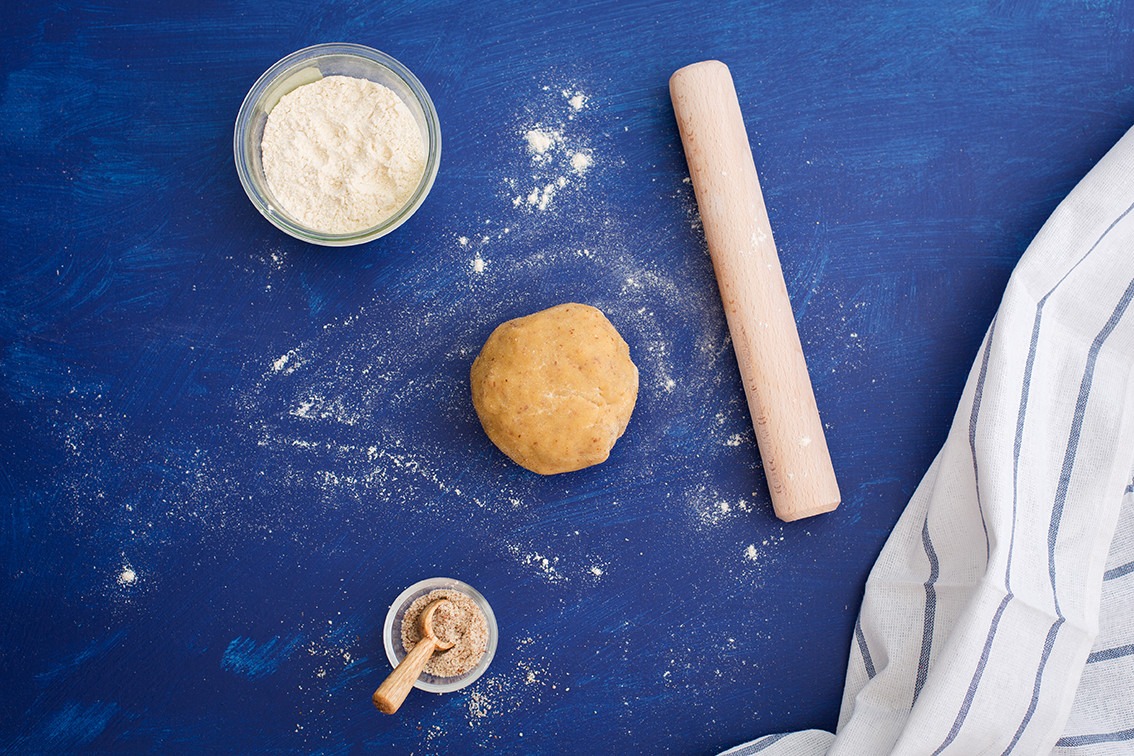 - Etalez un peu de farine de riz sur une planche puis la pâte à l’aide d’un rouleau de pâtisserie (environ 1/2 cm).