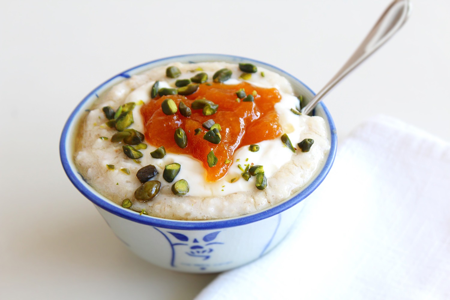 Répartissez le porridge chaud dans deux bols et versez la compote de fruits rouges encore tiède.